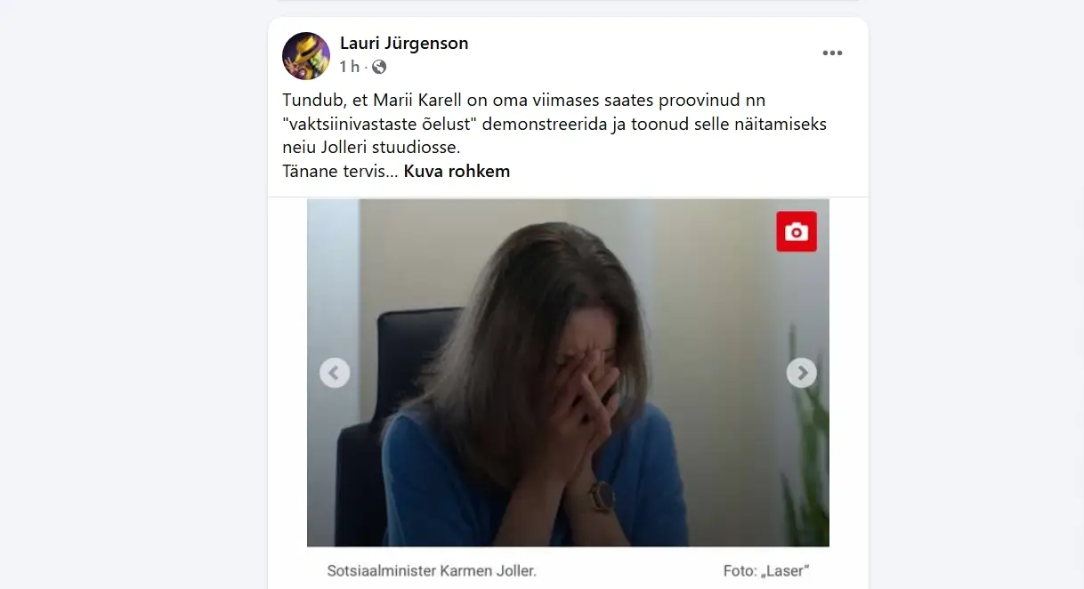 Inimesed, ärge vaadake ometi kommunistide televisiooni! Miks te seda endale teete? Ei ole vaja. Elu on liiga lühike ja ilus selleks, et kasvõi viis minutit Jolleri silmaveega ära lörtsida. Kui tahab, las vesistab, kuidas see meisse puutub? Tapetud inimesi see tagasi ei too.